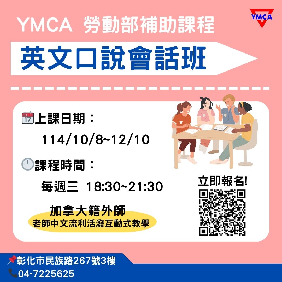 🎯 英文口說會話班,10月8日上課 💥把握今年最後機會!政府補助最高100%費用