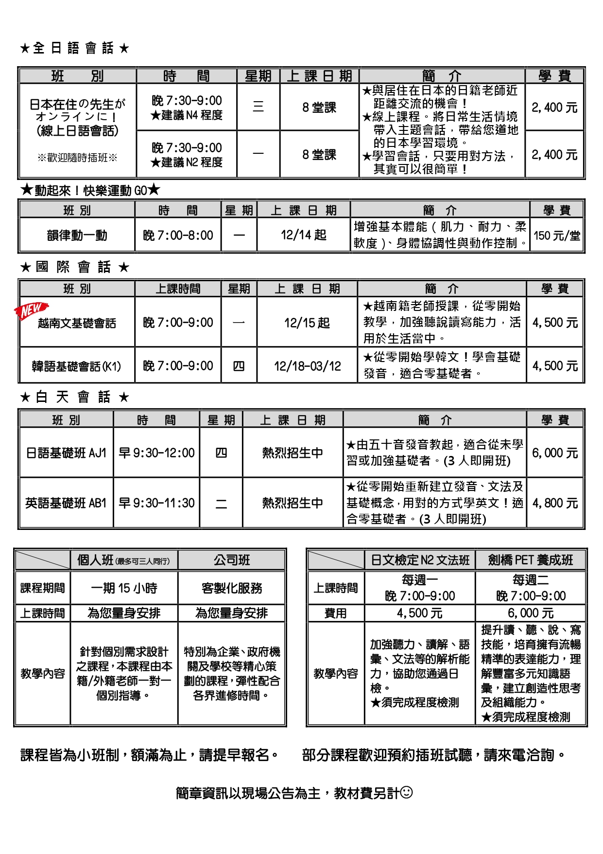 【NEW】🌟開啟國際視野!2025年12月英日語課程開放報名🌍