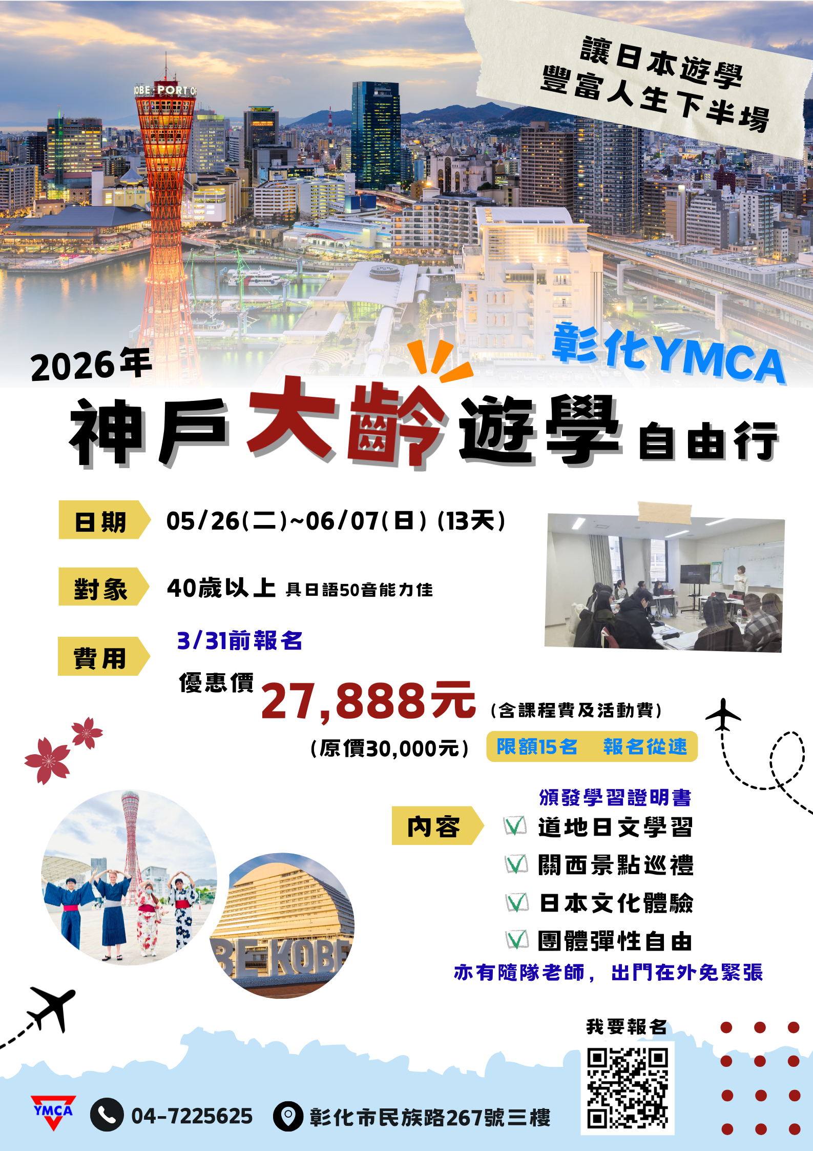 🌍2026 彰化 YMCA 神戶 大齡 遊學自由行✈️